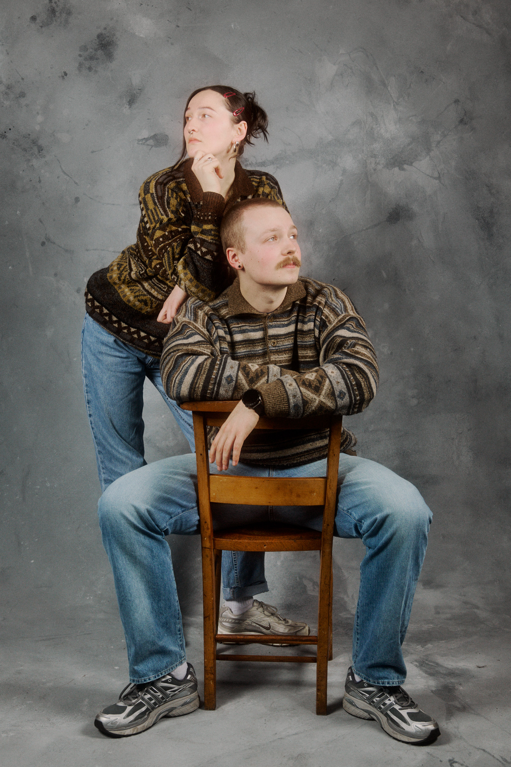 Expect playful set-ups – from shoulder-grab chains to album-cover stares – we’ll try a few and see what works.